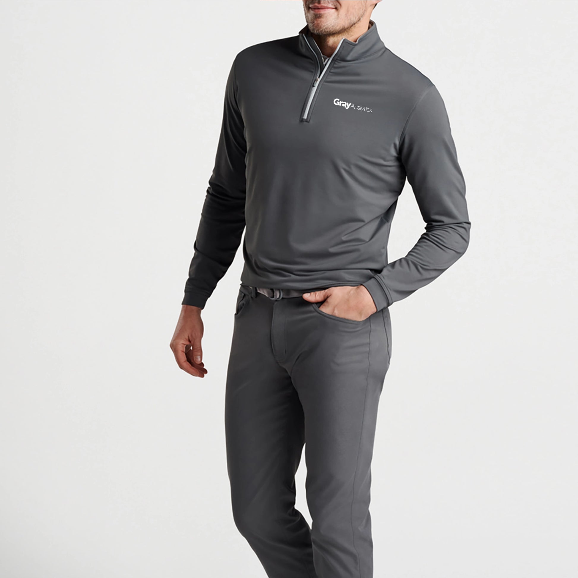 The Perth quarter-zip is made from a signature high-tech loop terry fabric that offers four-way stretch, two-yarn moisture-wicking for quickly drying, UPF 50+ sun protection and easy-care. Styled with a print zipper, mock collar, banded cuffs and hem.
